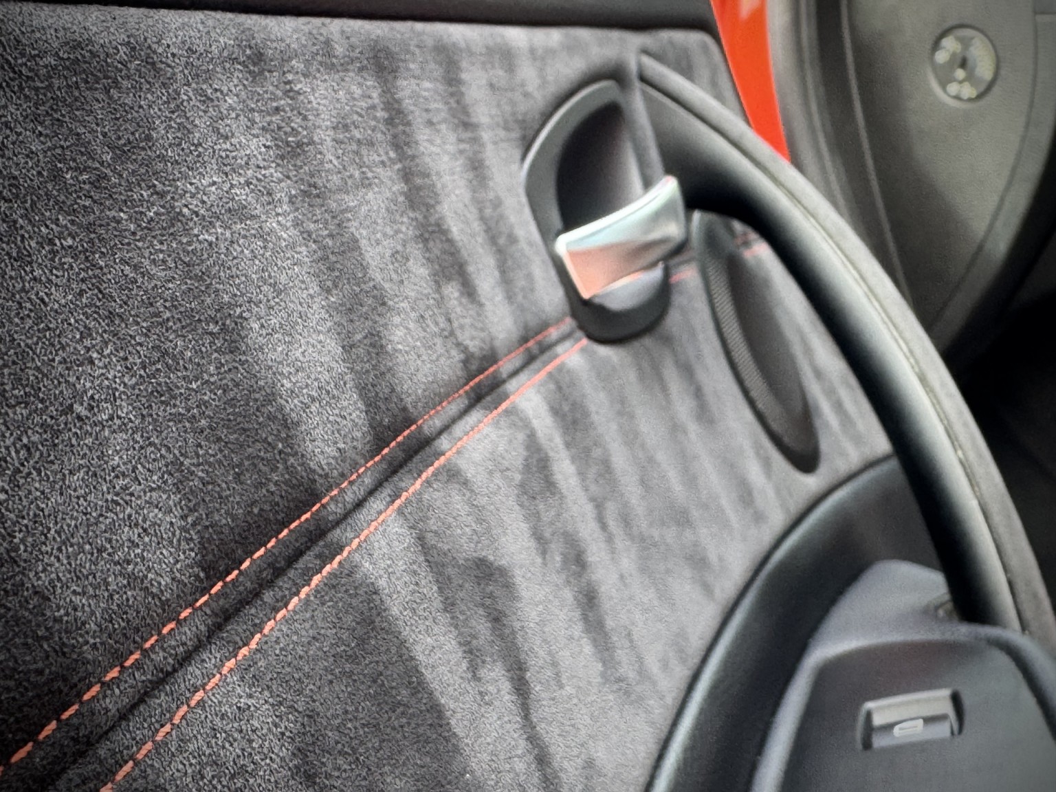 Interior: Black Boston Leather with Alcantara with Orange Stitching